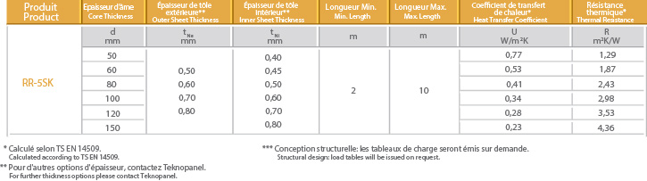 - Selon TS EN 14509, les valeurs U varient entre 0,77 - 0,23 W/m2K en fonction de l'épaisseur du panneau