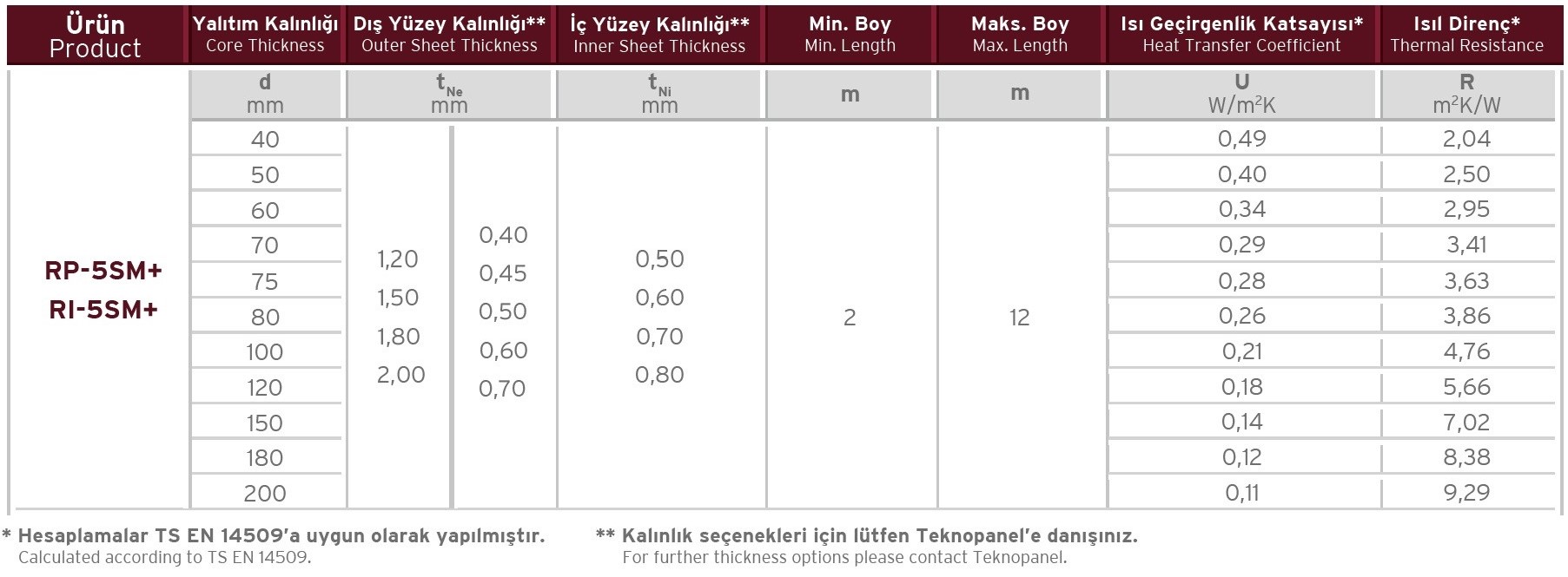 - Согласно TS EN 14509 значения коэффициента Tеплопроводности U в диапазоне 0,49-0,11 Вт/м2Кв зависимости от толщины панели